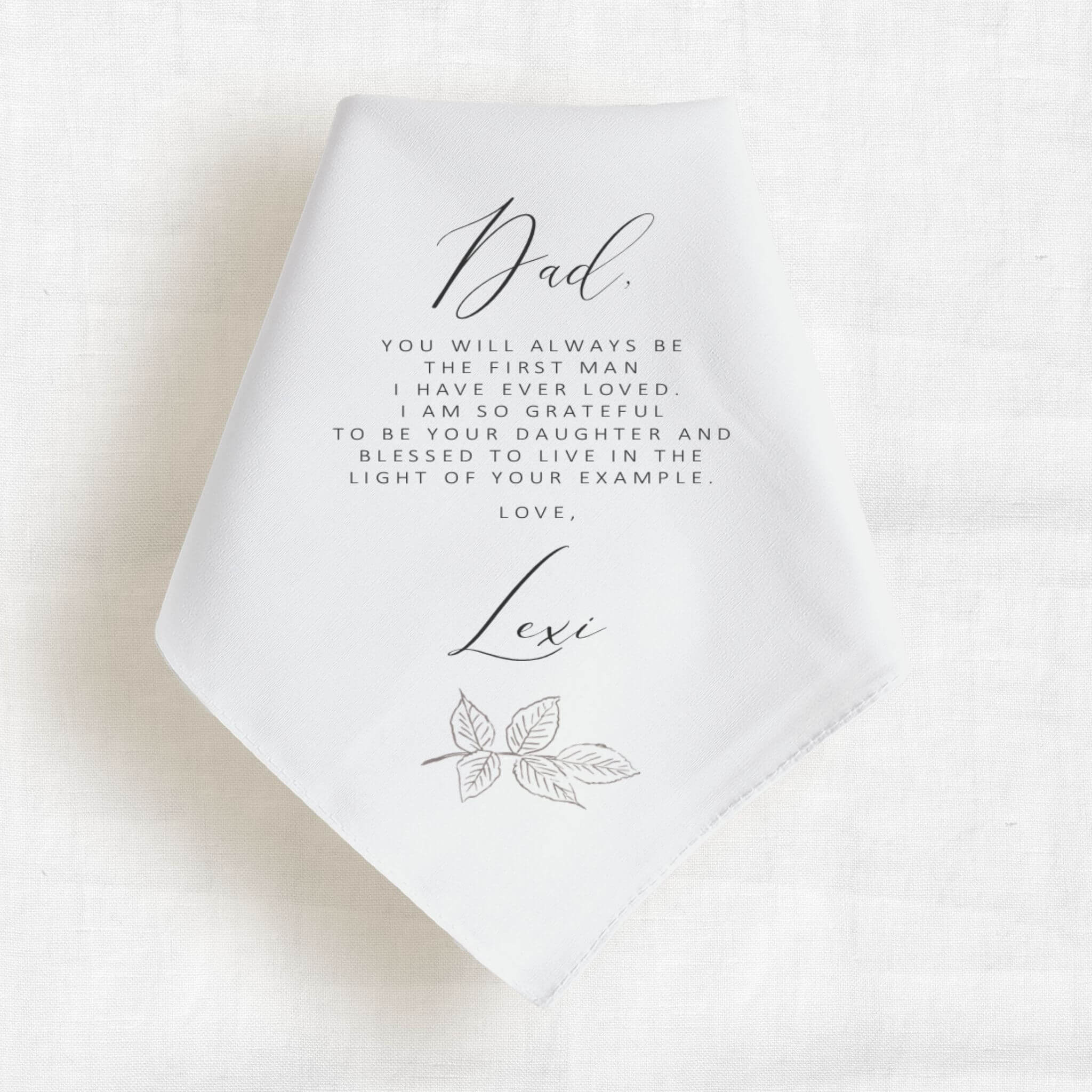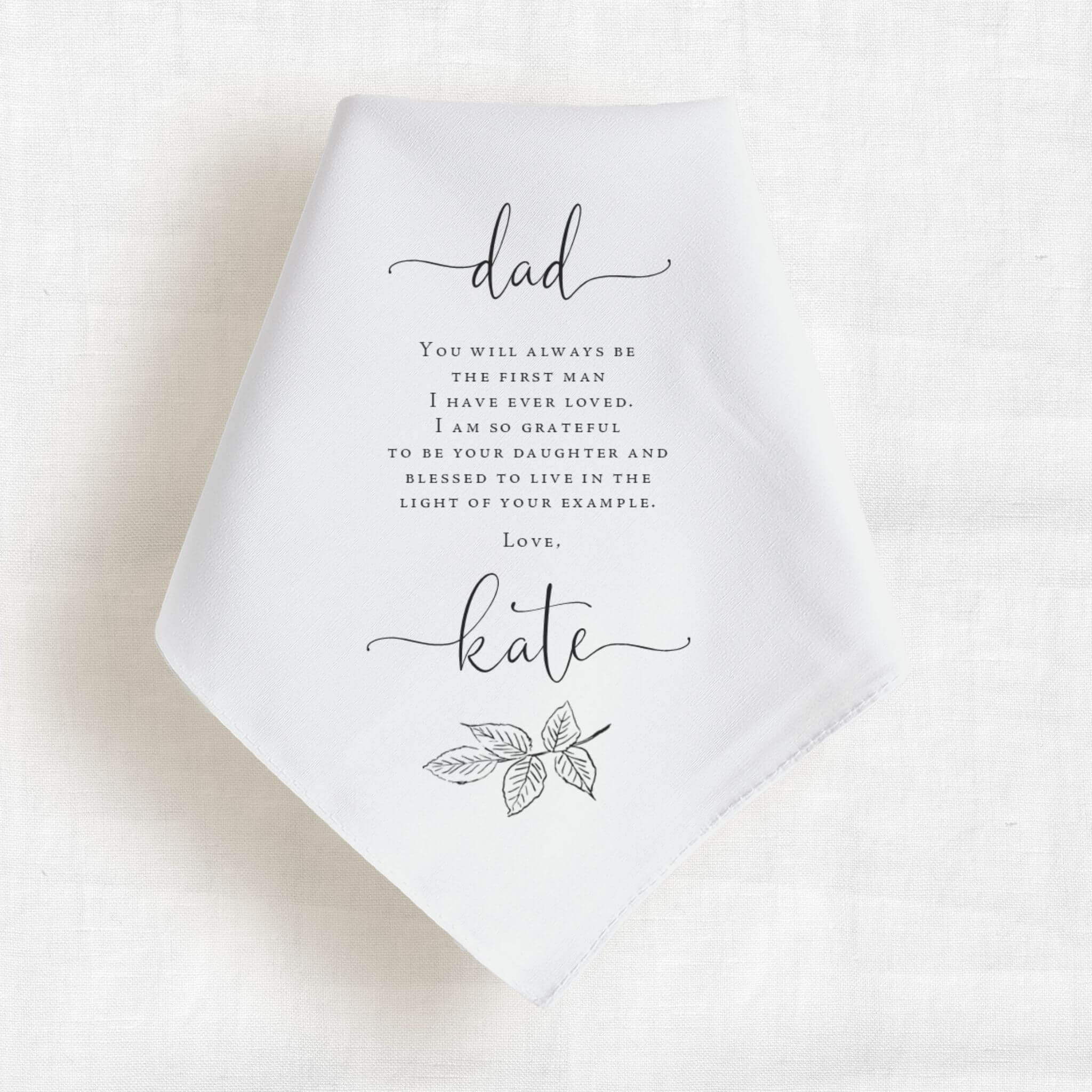 Our father of the bride handkerchief gift is a heartfelt keepsake from the bride to her dad. Personalize it with a custom message, name, or wedding date to create a meaningful reminder of this special day.