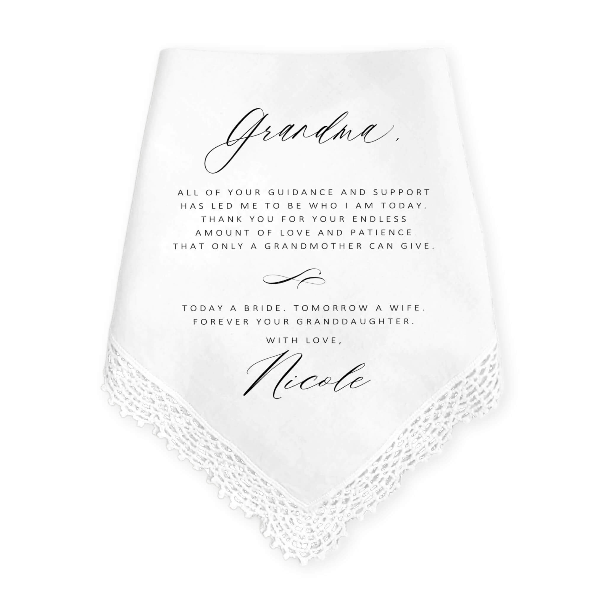Discover the perfect sentimental gift for your beloved grandmother with our collection of cotton handkerchiefs. Each beautifully crafted hanky can be customized with a personalized message, making it a heartfelt keepsake she’ll cherish forever. Whether it’s a gift from a granddaughter or grandson, these delicate lace handkerchiefs add a touch of elegance and love to any special occasion. Show your grandmother how much she means to you with a thoughtful, personalized keepsake she’ll hold close to her heart.