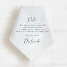 Personalize this men's handkerchief wedding gift for the groom from the bride. The bride can use the standard message or provide your own custom message to create a one of a kind wedding gift.
