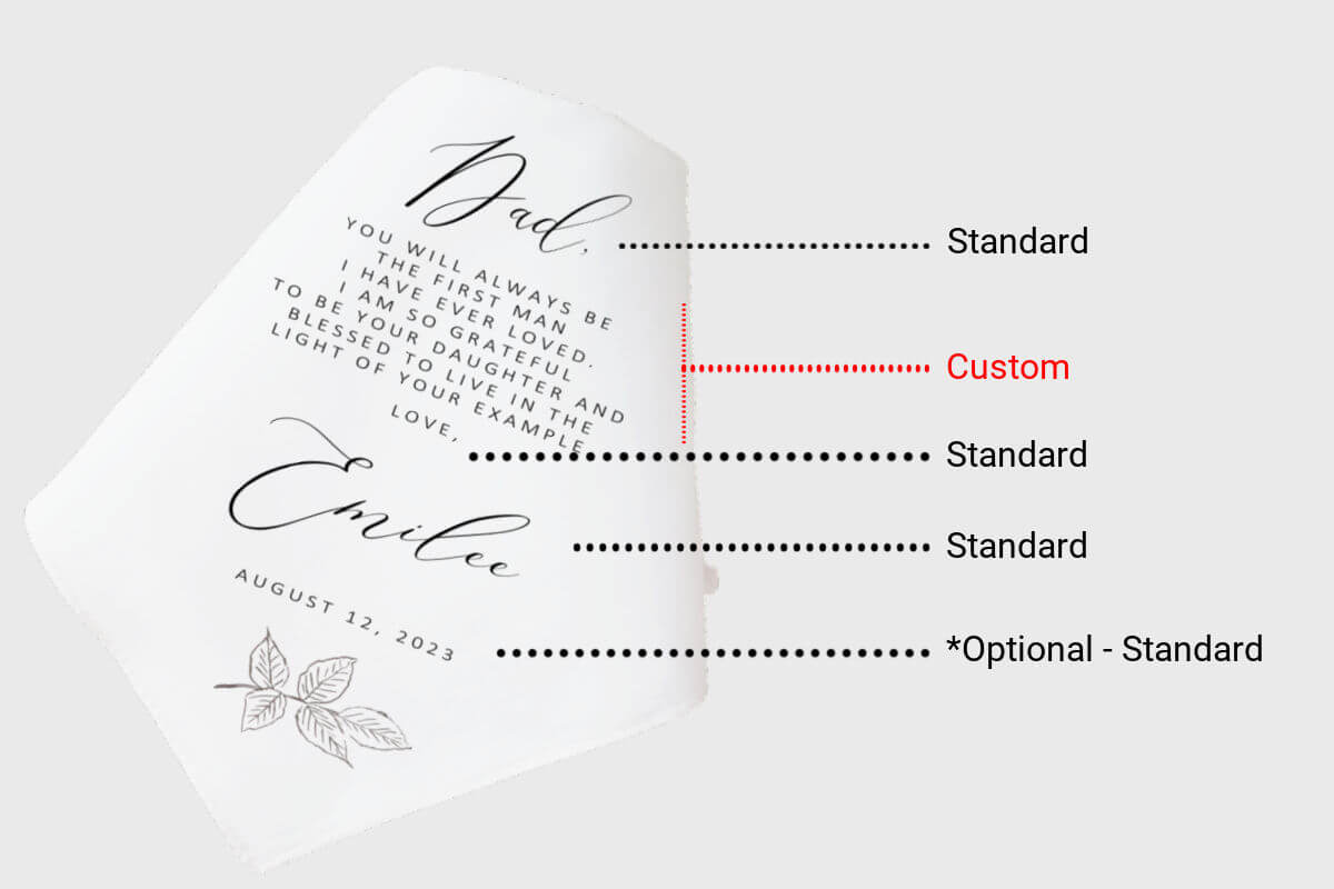 This unique personalized handkerchief for the father of the bride is perfect for the special man in your life! Our custom message handkerchief is a meaningful way to show your appreciation on your big day.