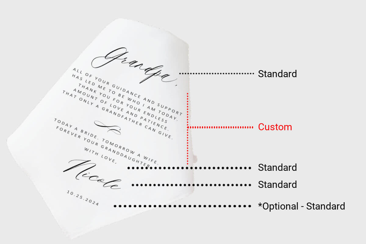 Make your wedding day even more special with this custom men's handkerchief. Crafted from soft cotton, this handkerchief is the perfect gift from the bride to her beloved grandfather. Personalize it with a heartfelt message and create a cherished keepsake that he will treasure forever.