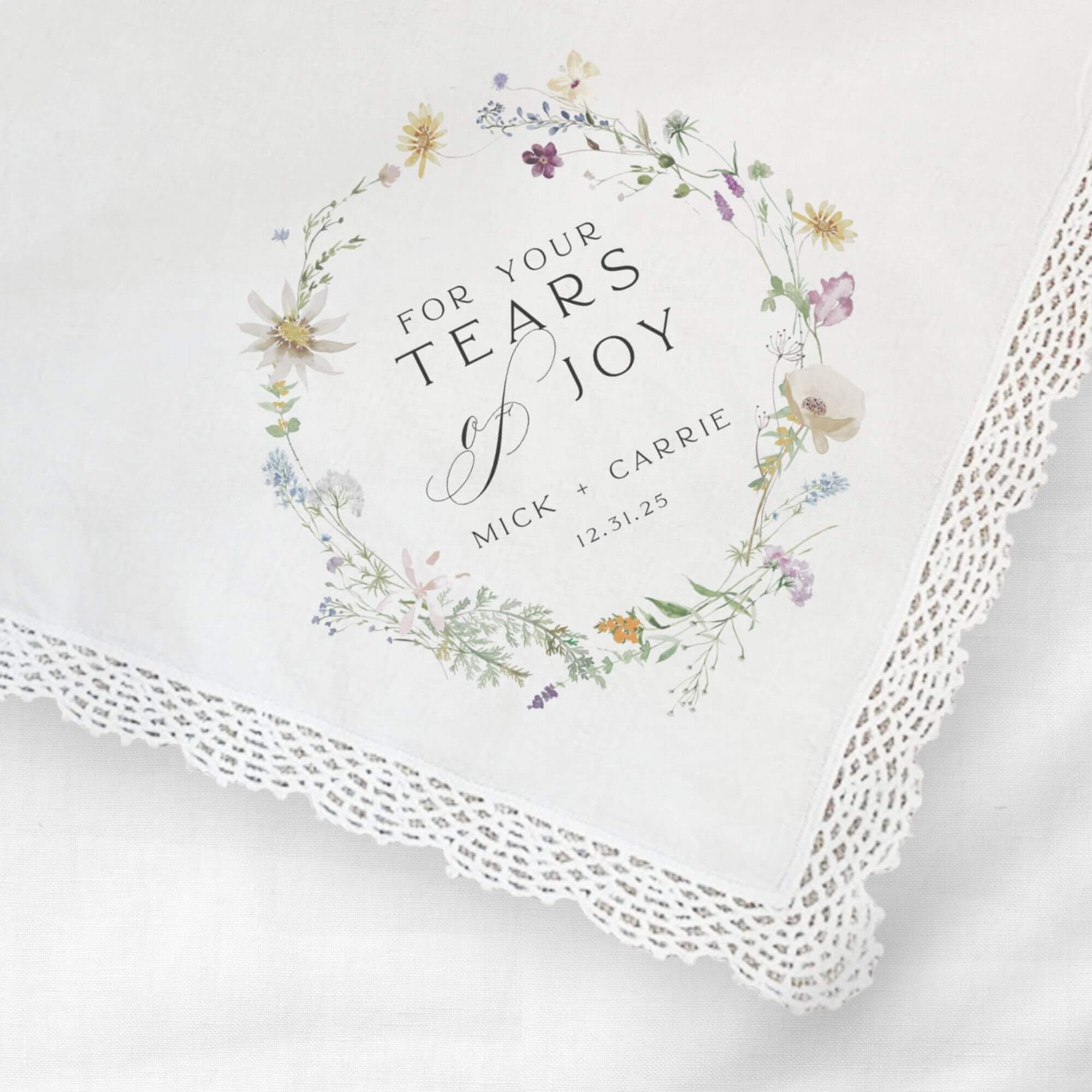 For the most special day of your life, give your guests a one-of-a-kind personalized handkerchief that they can cherish forever. Our printed handkerchiefs make for beautiful wedding favors, and each one is unique. They're carefully crafted from 100% cotton material, and they come in a variety of styles to suit any wedding theme.
