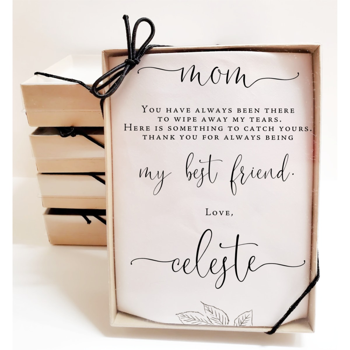 All of our personalized wedding gift and favor handkerchiefs come nestled in a sweet little gift box, perfect for gifting!