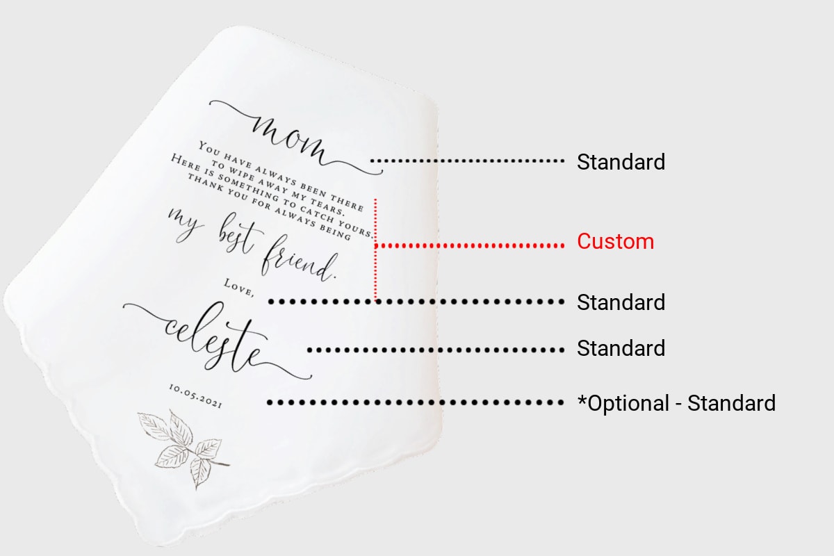 The specially selected handkerchiefs from The Polka Dotted Bee feature quality white cotton fabric that allows the personalized messages to be easily read by the gift recipient.